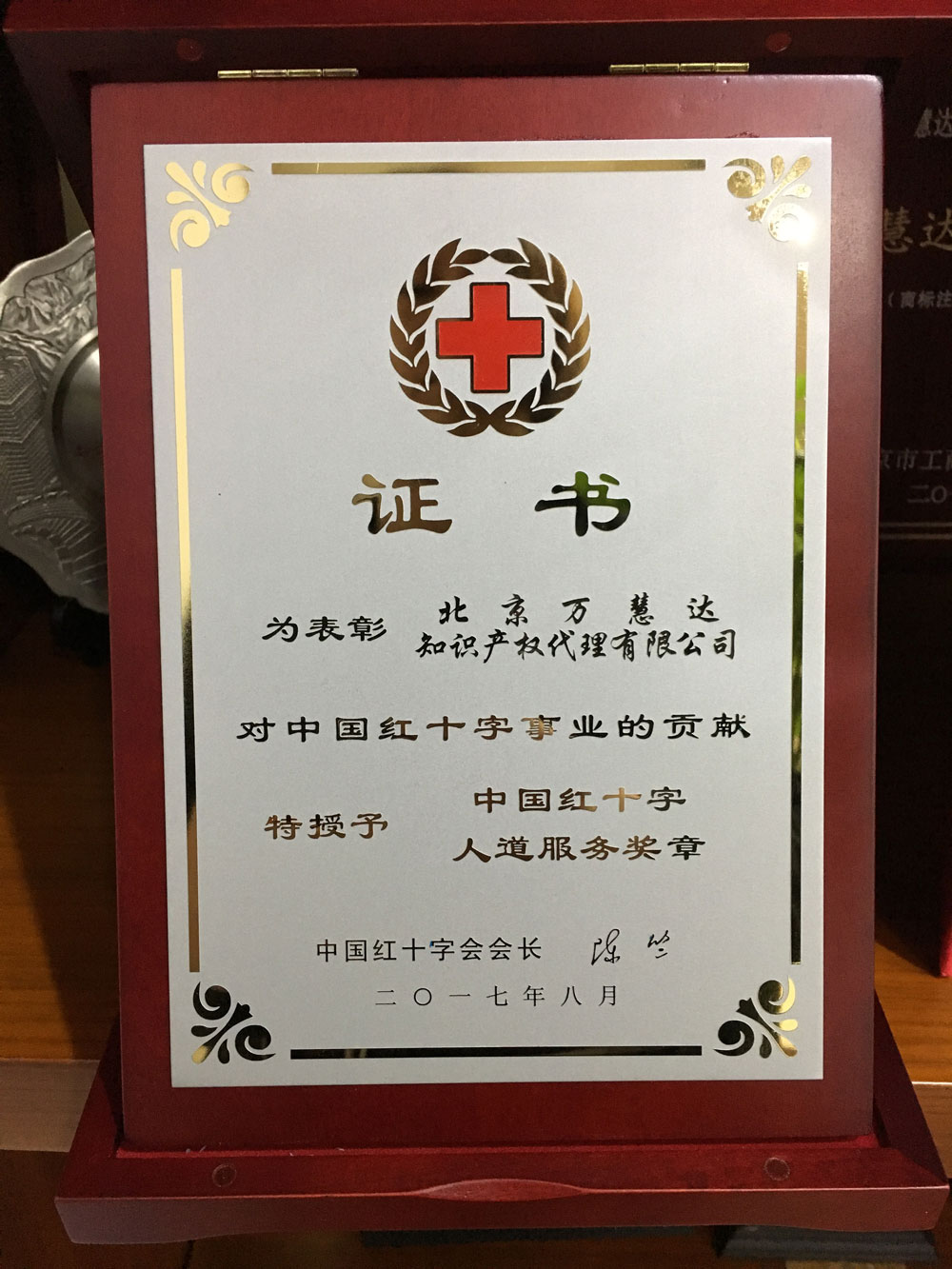 一直以来,万慧达知识产权都热心投身于社会公益事业,曾先后在重大自然灾害捐助、扶贫帮困捐助以及建校助学等活动中捐款捐物,积极承担社会责任;获得了社会各界的高度认可,并被中国红十字会授予“人道服务奖章”。