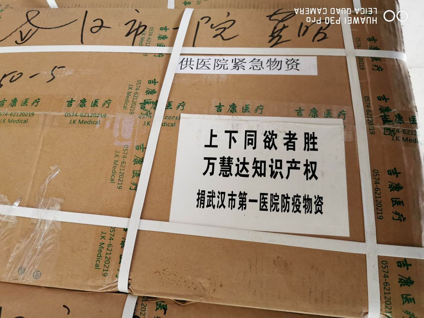 2月18日,第二批捐赠物资5000个医用隔离眼罩运达抗疫一线医院武汉第一医院;