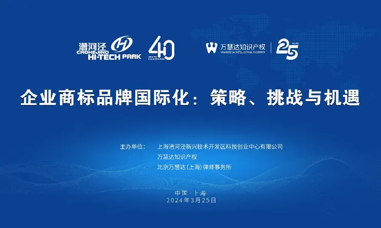 2024年3月25日,由万慧达知识产权、北京万慧达 (上海) 律师事务所、上海漕河泾新兴技术开发区科技创业中心有限公司联合主办的“企业商标品牌国际化策略,挑战与机遇”论坛在上海市漕河泾开发区成功举办。本次论坛旨在为企业提供深入洞察和实用策略,助力企业在国际舞台上取得成功,特邀请国内外行业专家学者进行分享,上海市知识产权服务行业协会秘书长方舟女士主持会议。