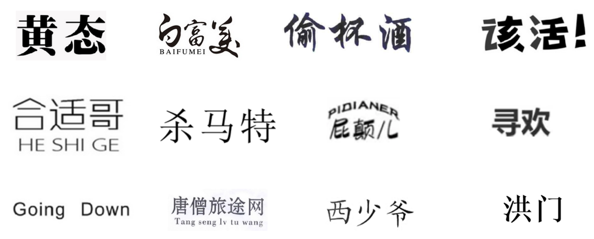 实践中,由于商标申请量巨大,涉“不良影响”的商标类型远超《商标审查审理指南》所列举的,其已经并不能涵盖当下常见的“不良影响”商标情形。指南中所列出的上述案例,都是属于比较明显的具有不良影响性质的商标,然而在实践中,相关公众碰到的很多商标并不是属于非黑即白、清楚明晰的情形,而是非常具有争议的案件,例如下述商标就因为具有不良影响而被驳回: