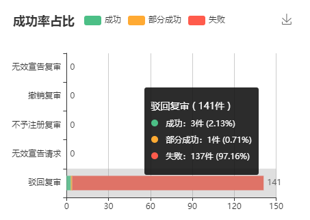 第二,此类商标一旦被驳回,通过复审争取注册的成功几率很低,大数据显示不超过10%。