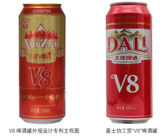 嘉士伯工贸于2020年6月16日向国家知识产权局提出宣告“V8啤酒罐”专利无效的请求,理由是:该外观专利与嘉士伯工贸的“大理V8啤酒”易拉罐的整体构图及图案设计基本相同,不符合专利法第二十三条第二款的规定,即外观设计应与现有设计或者现有设计特征的组合相比具有明显区别;该外观设计专利中的“V8”文字显著标识于产品正面,一般消费者通常会认为是产品的商标,与嘉士伯工贸的“V8”商标专用权相冲突,不符合专利法第二十三条第三款的规定,即外观设计不得与他人在申请日以前已经取得的合法权利相冲突。