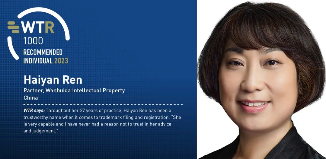 《世界商标评论》是国际知名商标专业媒体平台,本次评选耗时四个月,由专业的调研团队通过逾1,700次电话访谈,对全球80多个法域的商标法律服务机构和个人进行深度调研和专业评估,综合考虑专业实力、法律市场占有率、客户反馈等专业指标,最终形成《世界商标评论1000强》(WTR 1000)推荐榜单。