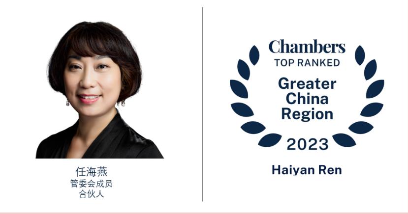 管委会主席、首席合伙人白刚,管委会成员、合伙人任海燕荣膺中资律师事务所知识产权非诉讼领域“业界贤达”(Eminent Practitioner)称号。