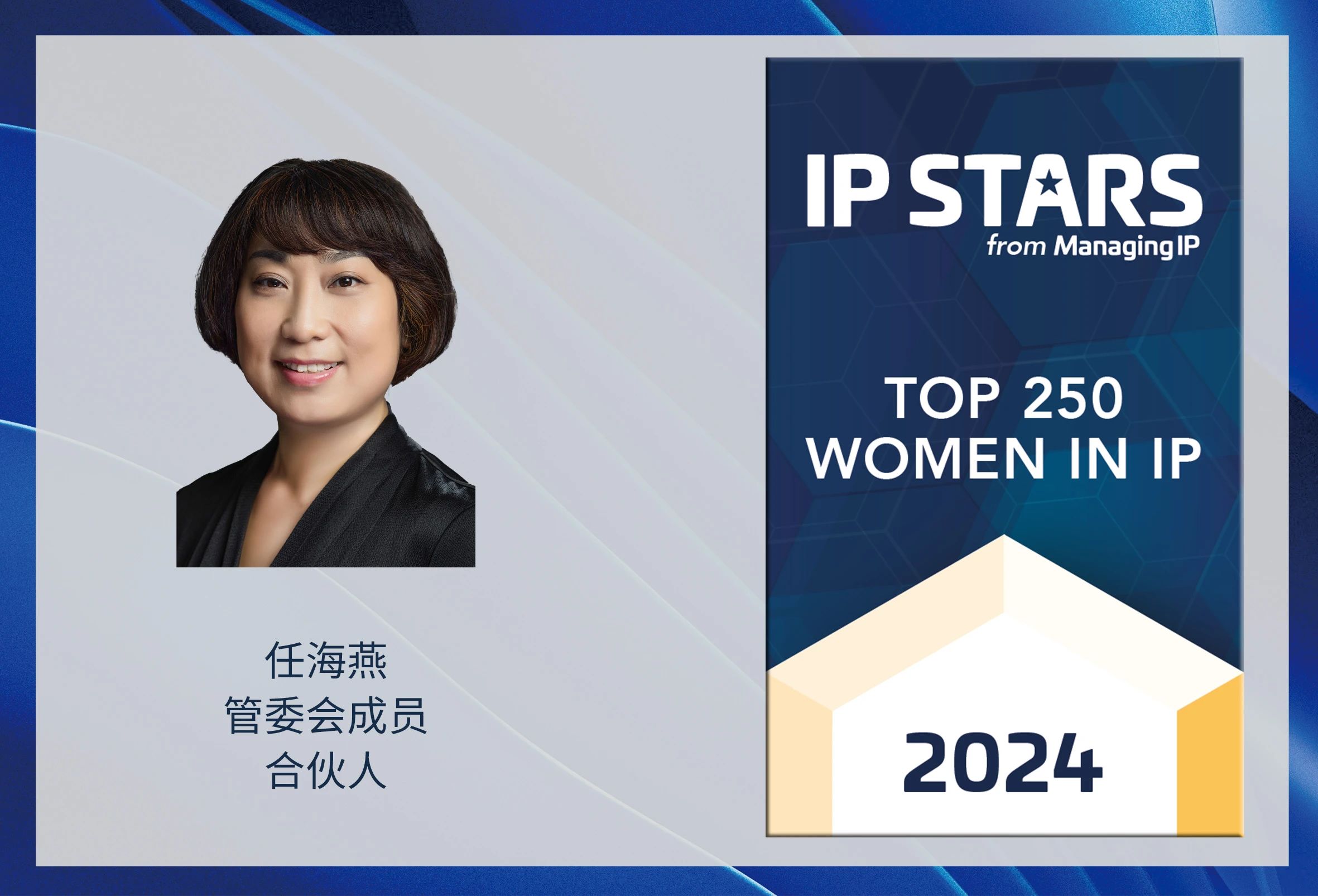 万慧达管委会成员、合伙人任海燕女士连续五年获评“MIP知识产权领域杰出女性”(Top 250 Women in IP 2024)称号。
