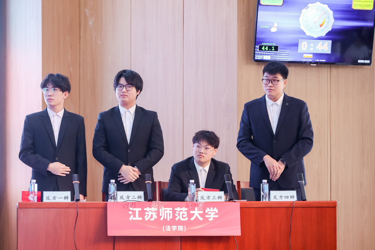 北京工商大学党委常委、副校长毛新述(左一)为亚军江苏师范大学法学院代表队颁奖