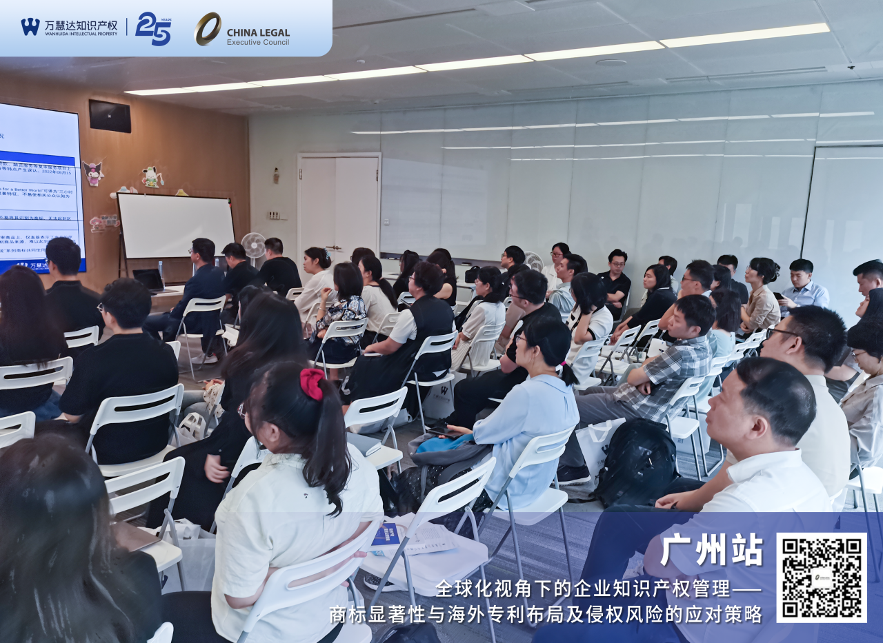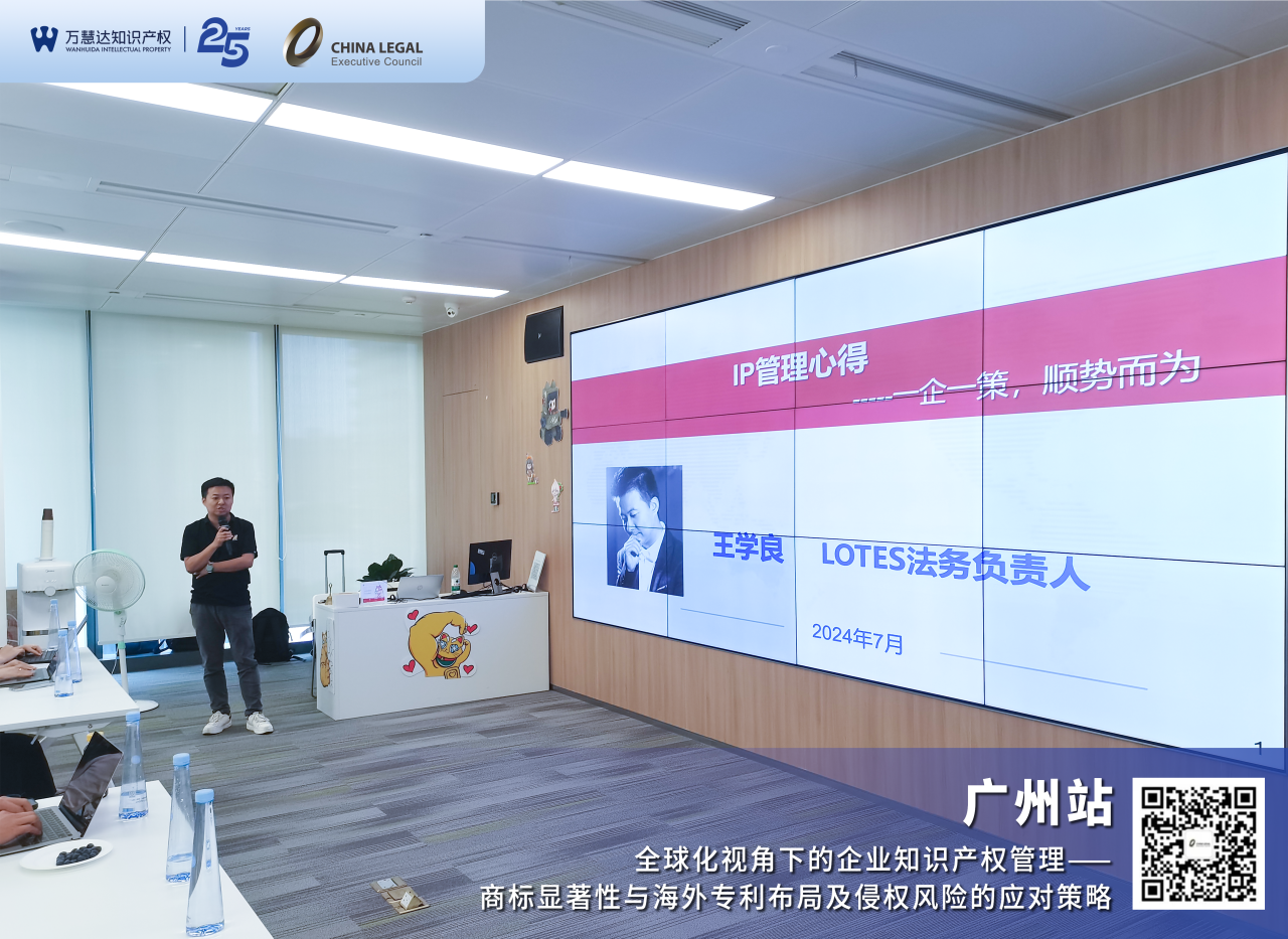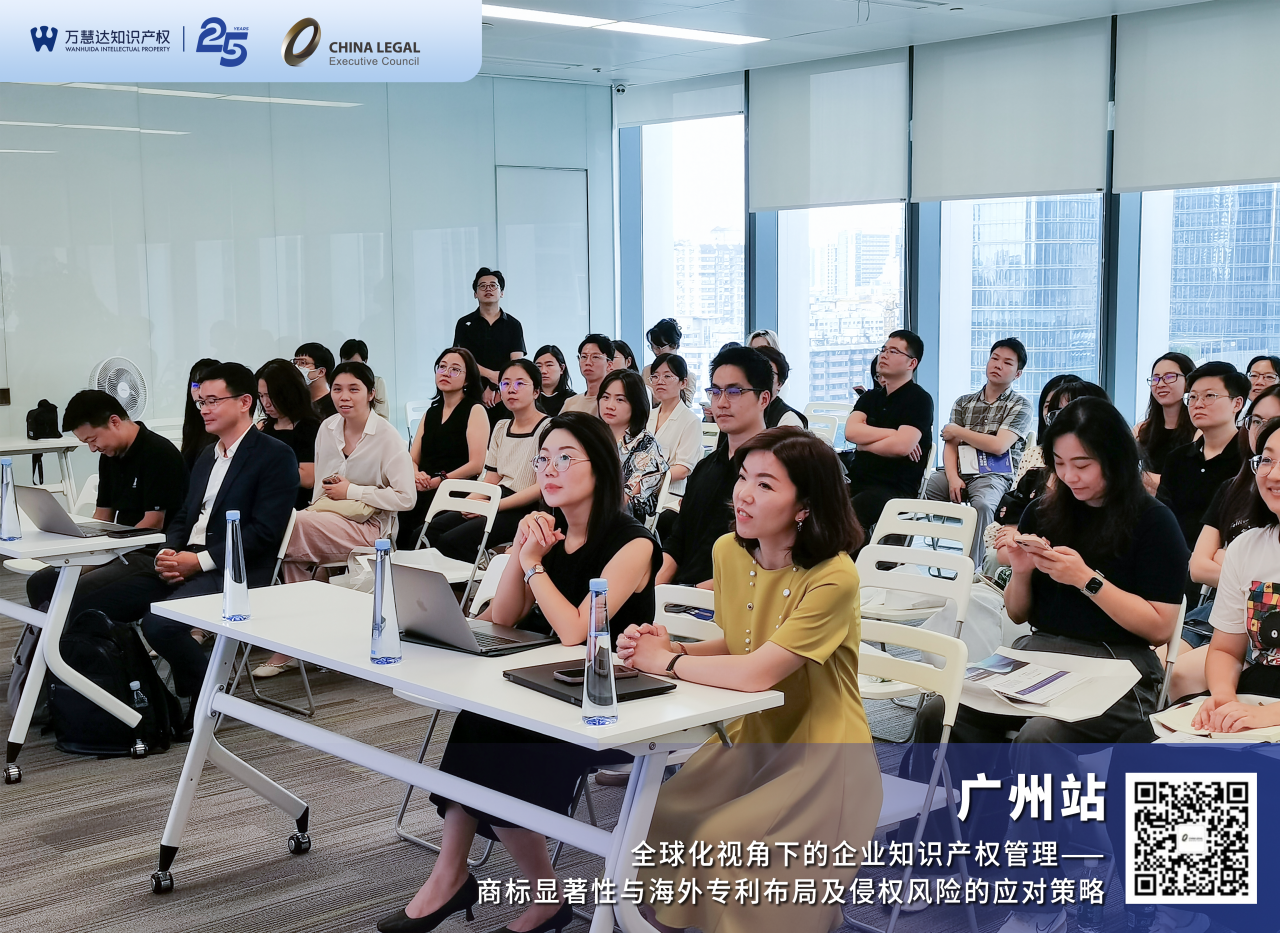 2024年7月12日,由万慧达知识产权联合理购LCOUNCIL联合主办的“全球化视角下的企业知识产权管理——商标显著性与海外专利侵权风险的应对策略”于广州圆满落幕!此次活动也是万慧达知识产权25周年系列巡回沙龙的第一场,来自不同行业的近60位企业法律人参与,交流了各自的见解与经验。