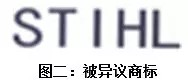 2011年4月18日,第三人徐艳在第22类“非金属绳索;网线;遮篷;尼龙编织袋(仿麻袋);填料;纤维编织原料”商品申请注册第9348479号“STIHL”商标(以下简称“被异议商标”)。(如图二)