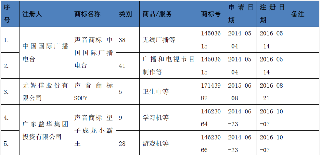 一、声音商标在中国申请及注册情况