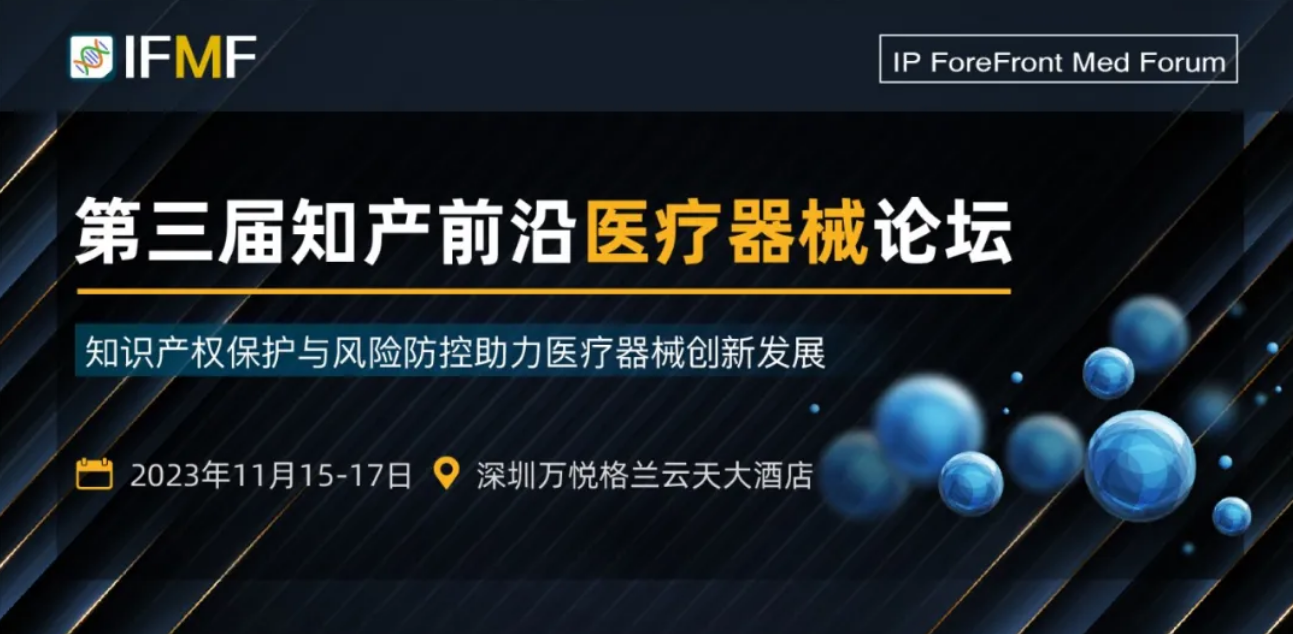 2023年11月15-17日,由YIP Events & 知产前沿新媒体 & 合规Plus联合主办的第三届知产前沿医疗器械论坛(简称“IFMF”)在深圳万悦格兰云天大酒店盛大召开。