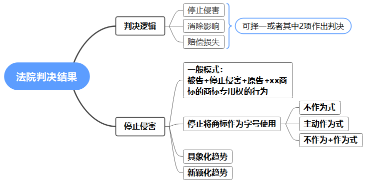 通过对上述法院判决结果的梳理,关于停止侵害的判决结果,可以作出思维导图如下:
