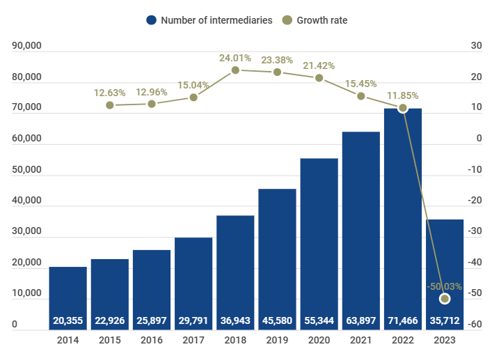 Number of recorded trademark intermediaries in China – 2014-2023