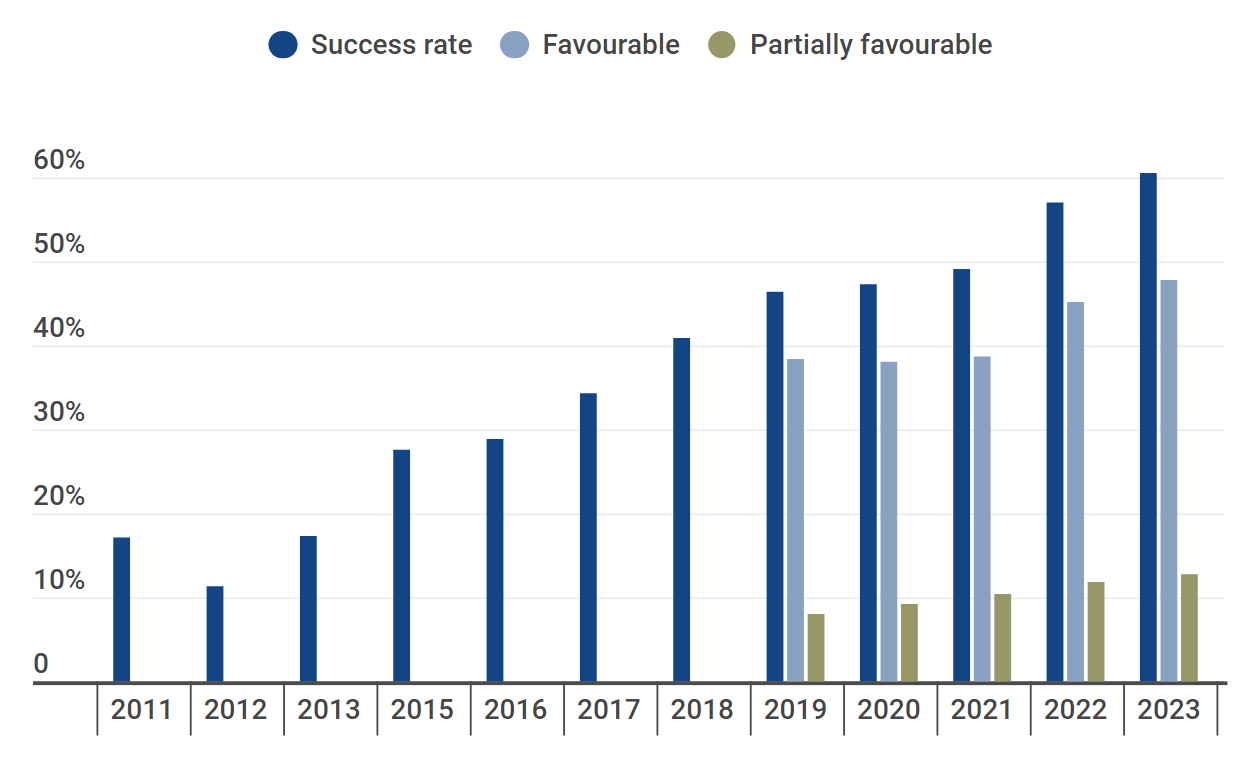 For instance, the 60% success rate for opposition cases in 2023 can be broken down into: