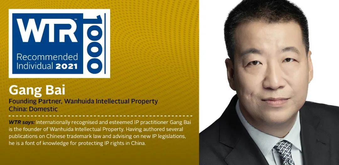 在个人奖项中,首席合伙人、管委会主席白刚先生,合伙人、管委会成员黄晖博士、姚红军律师蝉联“商标保护及诉讼”领域杰出个人。