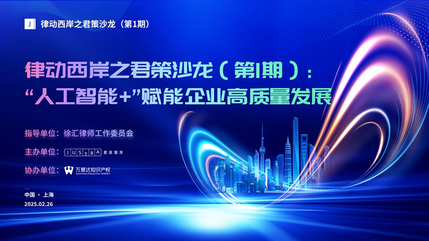 随着时代的不断进步与城市发展的日新月异,在全球化浪潮与数字化转型的双重驱动下,上海西岸,作为城市创新与发展的前沿阵地,力求在新的时代背景下实现跨越式发展。知识产权战略与保护、人工智能赋能产业升级、数据产权界定与数据要素市场建设以及企业出海策略与国际化路径探索无疑成为推动区域高质量发展的关键要素。2025 年,值此“十五五” 规划开局之际,立足上海西岸发展方向,积极回应企业关切,万慧达知识产权携手战略合作伙伴北京君策知识产权发展中心在徐汇区律师工作委员会的指导下,在申城举办系列“君策沙龙”活动。
