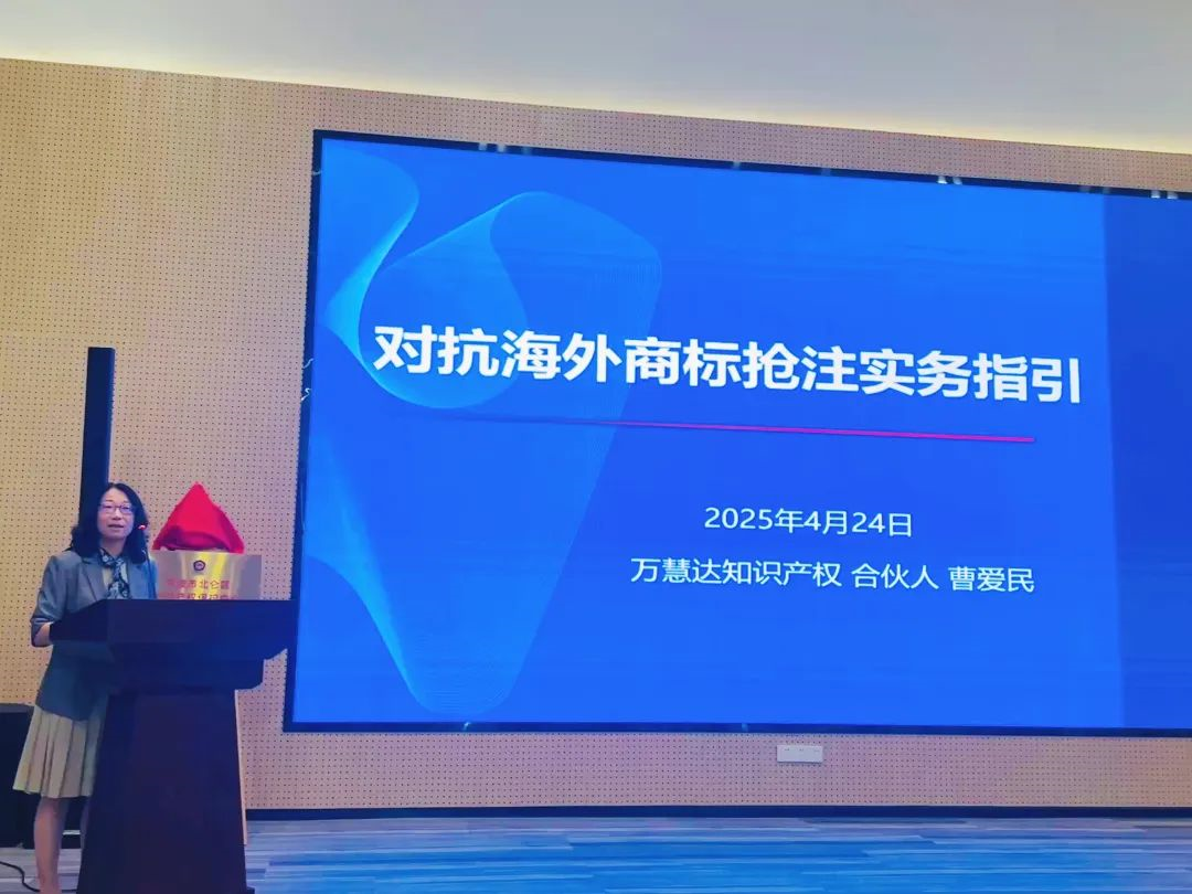 在“出海第一课”北仑专场活动中,合伙人曹爱民以“涉外商标抢注预防及维权”为题发表演讲,聚焦涉外商标抢注难题,援引典型案例,为外贸企业讲解企业品牌及产品在出海过程中会遇到的相关知识产权问题及解决办法。