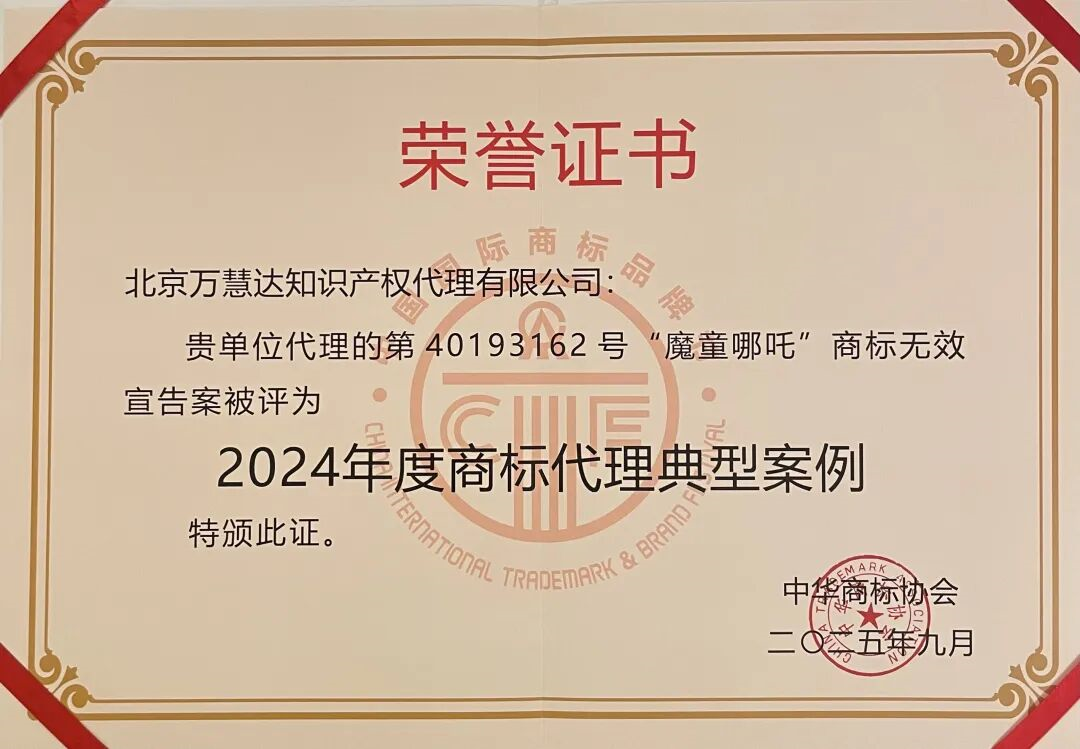 “魔童哪吒”商标无效宣告案入选中华商标协会2024年度商标代理典型案例