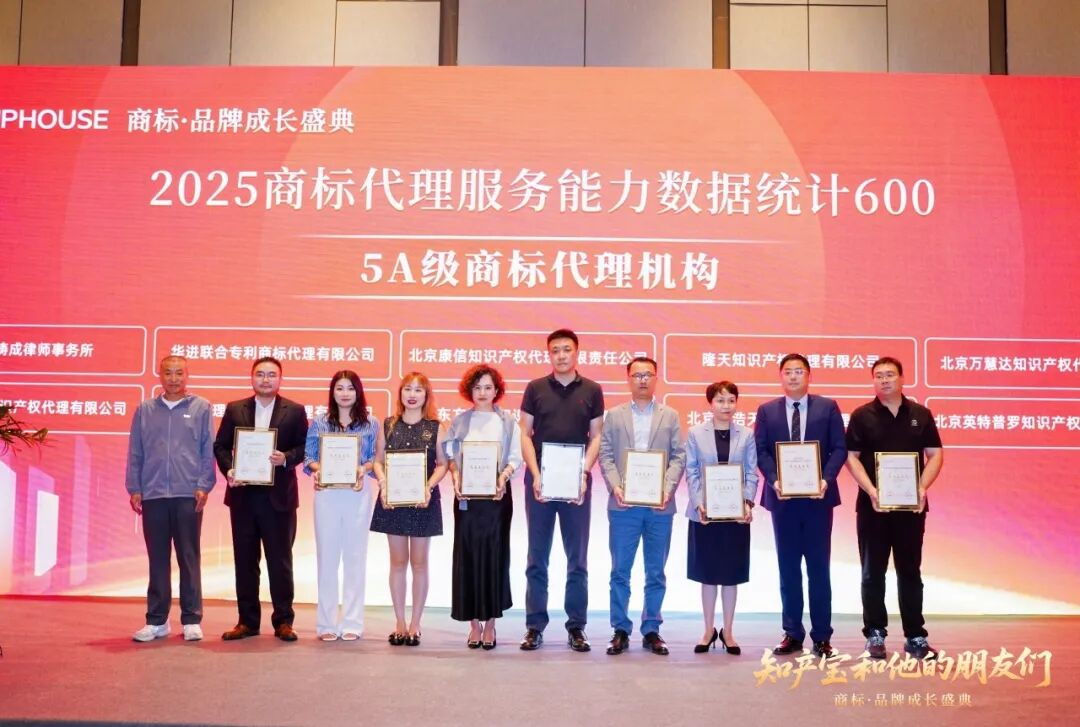 合伙人刘斌参加知产宝“商标代理服务能力数据统计600”和“中国创新能力品牌企业TOP50”颁奖典礼暨招待会,代表万慧达公司领取2025年度AAAAA级商标代理机构;