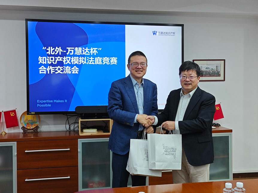 2025年10月10日,北京外国语大学法学院院长丁相顺和副教授刘丽娟莅临万慧达知识产权座谈交流,洽谈进一步合作事项。万慧达知识产权管委会成员、合伙人黄晖,合伙人李运全、石丽燕,宣传专员高思以及战略合作伙伴北京君策知识产权发展中心副理事长汪泽,副主任马莉接待访问并参与交流。