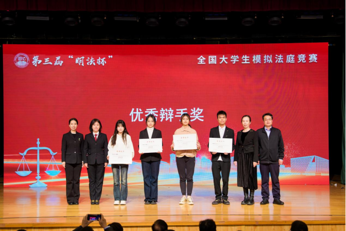 经过四天的激烈角逐,中国人民大学赛队获得第三届“明法杯”全国大学生模拟法庭竞赛冠军,华东政法大学赛队获得亚军,南开大学赛队、中国社会科学院大学赛队获得季军。四川师范大学赛队、北京大学赛队、中南财经政法大学赛队、清华大学赛队获得“优秀书状奖”。吉林大学赛队符雅倩、南京大学赛队张佳琳、上海交通大学赛队夏心雨和武汉大学赛队刘琳博获得“优秀辩手奖”。中国海洋大学赛队、河南财经政法大学赛队、对外经济贸易大学赛队、复旦大学赛队、中央财经大学赛队、中国人民公安大学赛队、中央民族大学赛队、北京理工大学赛队、四川大学赛队、北京师范大学赛队、云南民族大学赛队、中国政法大学赛队、浙江大学赛队和青海民族大学赛队获得“优秀组织奖”。