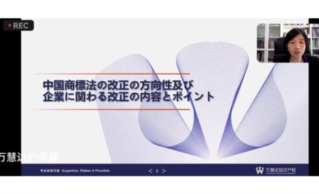 万慧达知识产权管委会成员、合伙人李斌线上参与“中国商标法修改...2023.09.21万慧达知识产权管委会成员、合伙人李斌线上参与“中国商标法修改动向以及企业应对策略”讲座并做演讲2023年9月21日,由大阪发明协会主办的《中国商标法修改动向以及企业应对策略》讲座以视频会议的方式召开。共有包括明治控股、KANEKA、AICOM、SNK等公司的近50名企业知识产权人员参会。万慧达知识产权管委会成员、合...2023.09.21