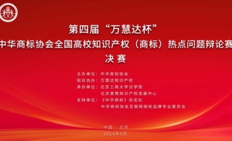 赛场快报︱人大夺冠!第四届“万慧达杯”中华商标协会全国高校知...2024.06.16赛场快报︱人大夺冠!第四届“万慧达杯”中华商标协会全国高校知识产权(商标)热点问题辩论赛圆满闭幕!2024年6月16日下午,第四届“万慧达杯”中华商标协会全国高校知识产权(商标)热点问题辩论赛决赛在北京工商大学(阜成路西校区)隆重举行。本届辩论赛由中华商标协会主办,万慧达知识产权冠名协办,北京工商大学法...2024.06.16