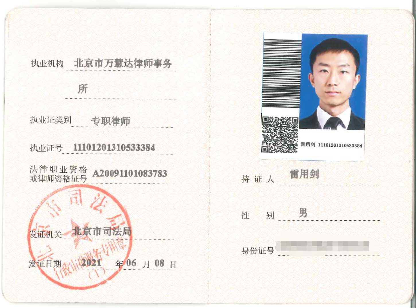 雷用剑北京合伙人 / 资深律师电话:(86-10) 6892-1000业务领域:商标、著作权、知识产权诉讼、出海服务工作语言:中文、英文